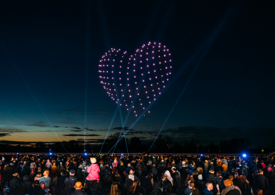 Our spectacular display features 600 drones, creating a mesmerising visual experience.