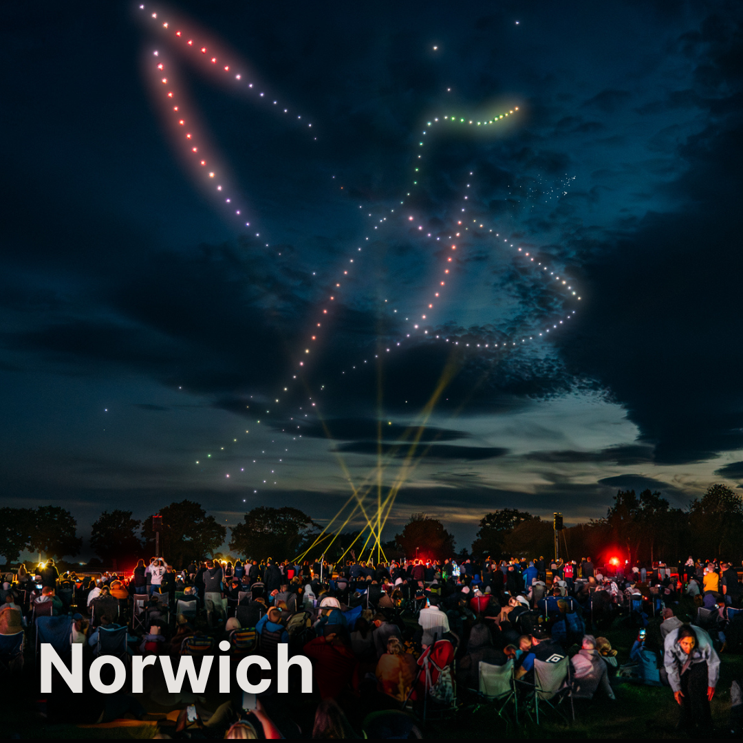 Witness the night sky filled with hundreds of synchronised drones, creating mesmerising animations with a symphony of light and sound.