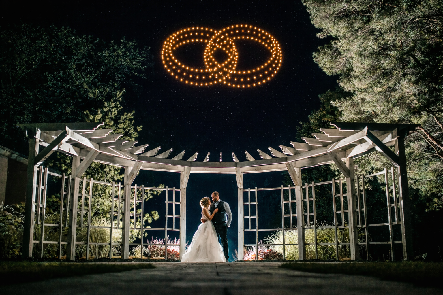 A Lumina wedding show is a precision-orchestrated aerial performance using illuminated drones flying in perfect formation above your venue.